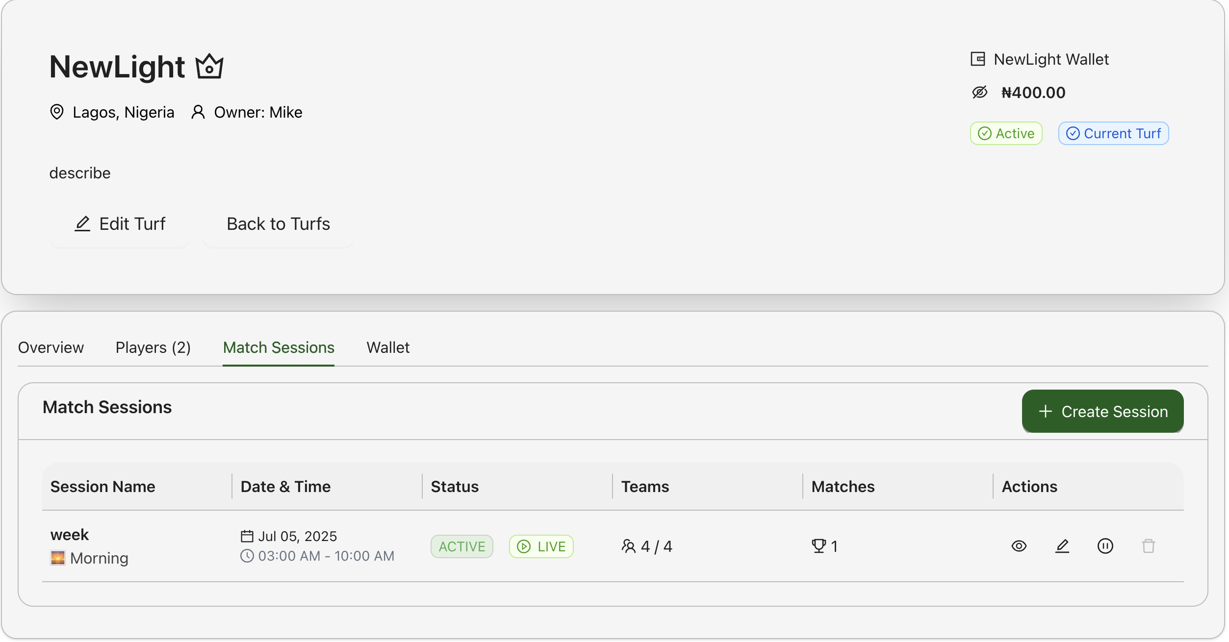 Start with a free account, create your turf, and run match days with structured sessions, clear payment control, and confident player experience.
