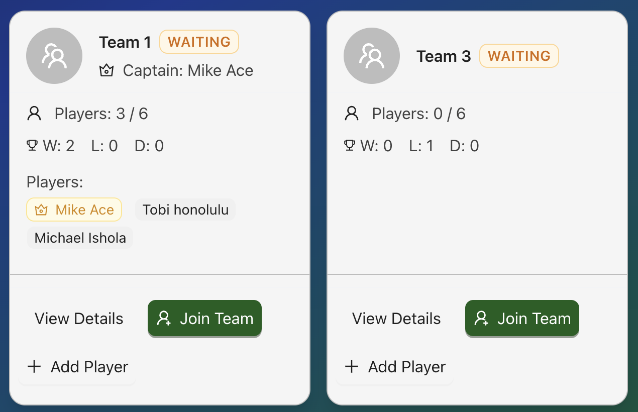 Skip manual team picking. Players are grouped quickly based on availability and setup rules.